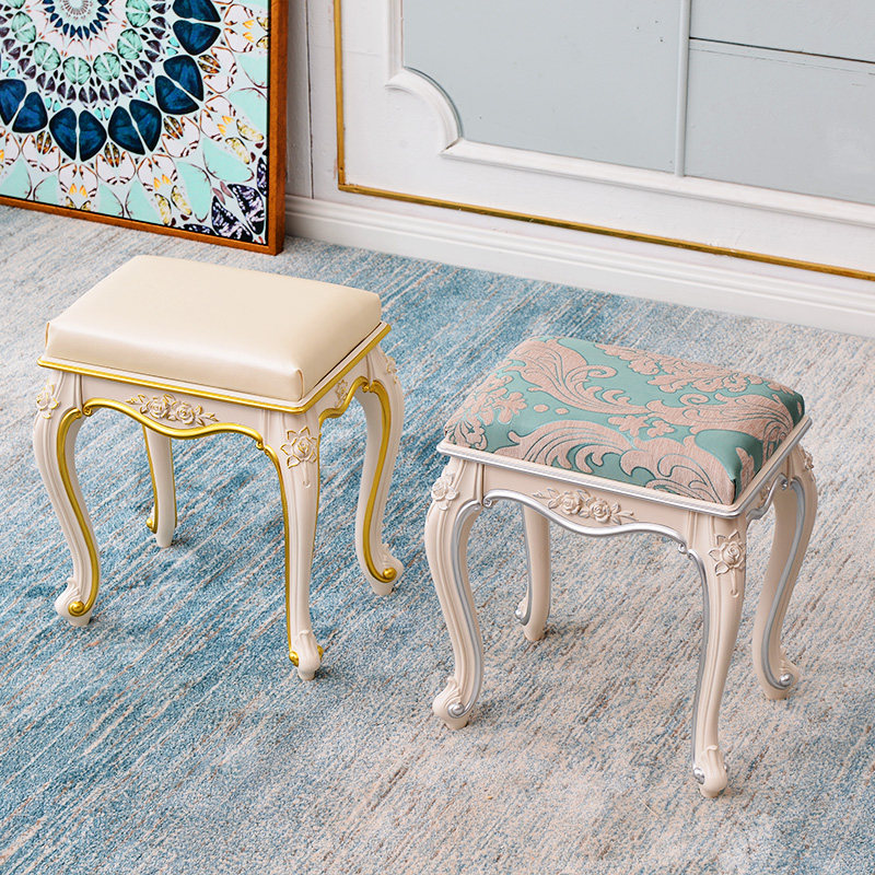 European style dressing table stool carved simple makeup stool bedroom manicure stool princess beauty chair PU leather shoe changing stool