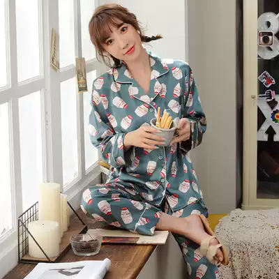 Korean autumn and winter pajamas female summer ice silk long sleeve can wear thin fresh student cotton silk home suit suit