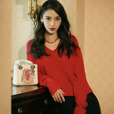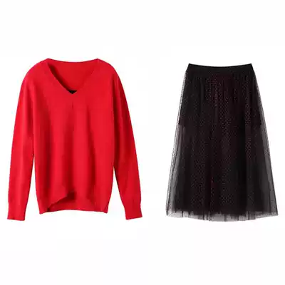 Star baby Yang Ying same model 2021 autumn and winter New Korean red pullover sweater mesh skirt two-piece set