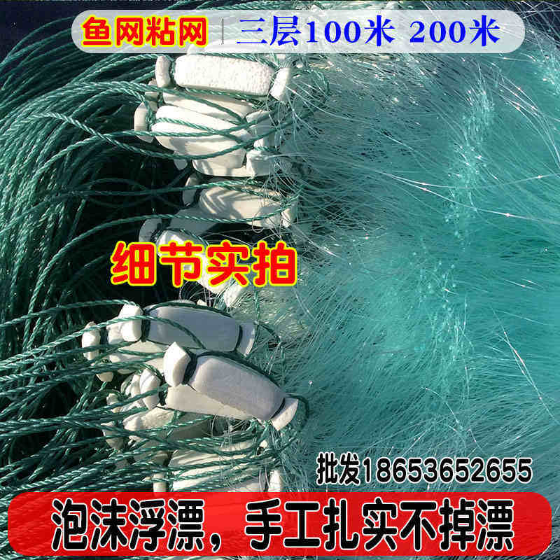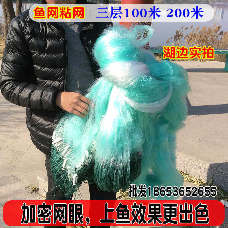 100 meters soft silk 100 meters fishing net black drift big fish 4 fingers half a catty five fingers sticky net three-layer wire mesh fishing net sinking net