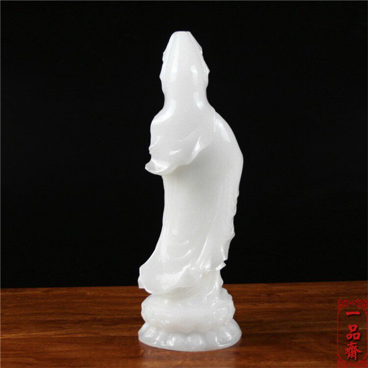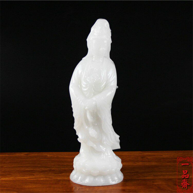 Natural white jade Nanhai Guanyin Buddha statue Bodhisattva standing statue feng shui offering ornament home Chinese town house Qiuzi living room