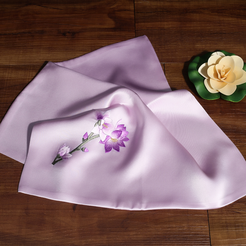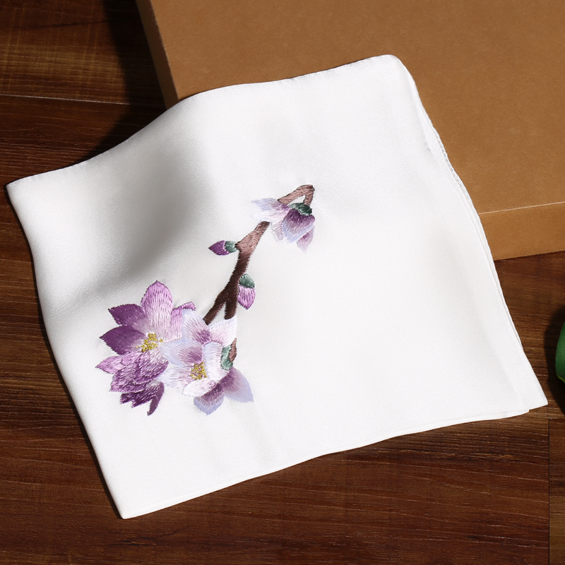 Su embroidery silk handkerchief Female hand embroidery Mulberry silk Magnolia handkerchief Suzhou specialty silk personalized gift handkerchief