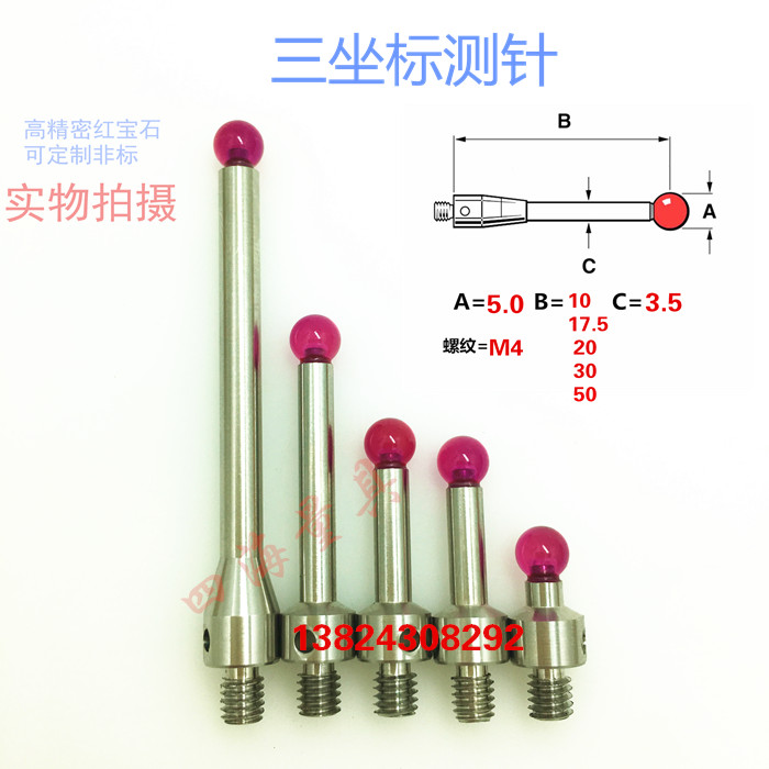 Three times meta-three-coordinate measuring needle A-5000-9685 applicable M4-5 0 ball-length 50mm tungsten steel conductive measuring needle