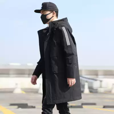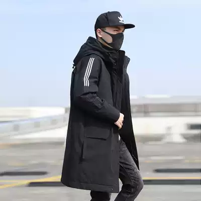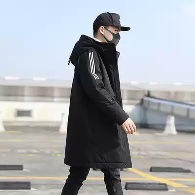 Down jacket men's long version of the tide card stream winter jacket young handsome tooling over the knee Pike burst white duck down