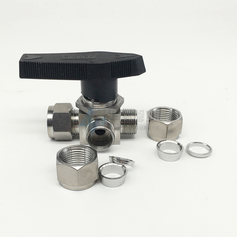 304 316 stainless steel horizontal card sleeve three-way ball valve YFP-1A imitation of the United States panel three-way switching L T type