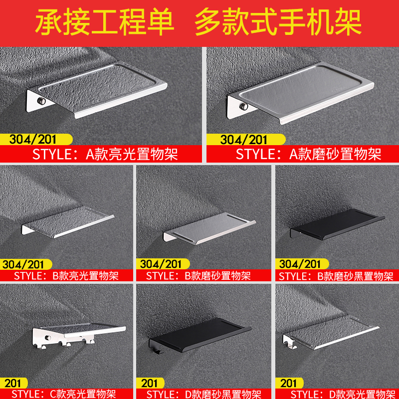 Powder room mobile phone holder Toilet mobile phone holder Toilet hand phone free punch stainless steel tray Public shelf