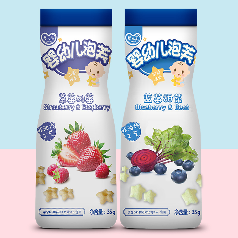 Baby Fun Baby Little Snack Star Puffs No Added Sugar Salt Supplement Kids Cookies 6-12 Months Strawberry Flavor