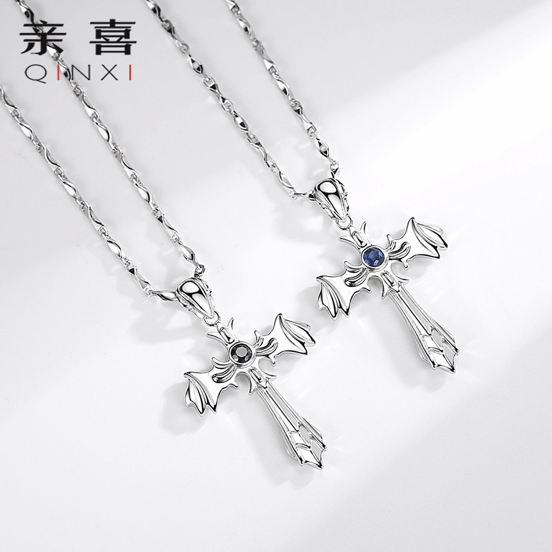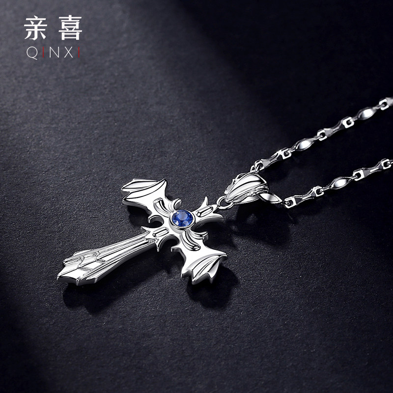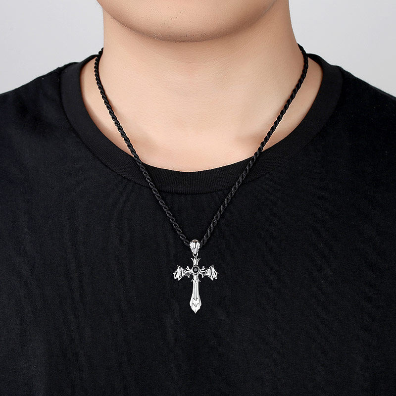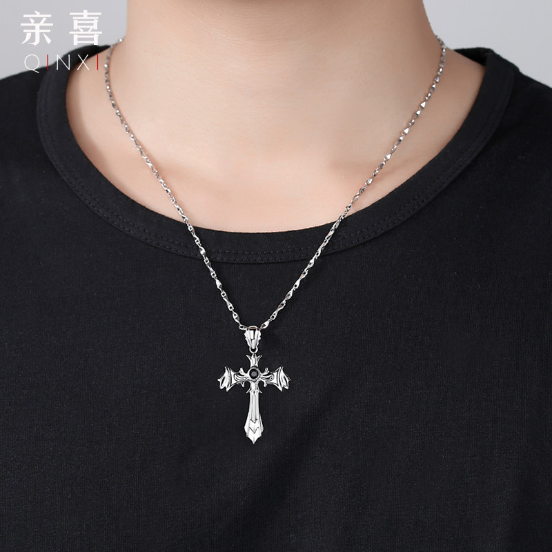 Cross necklace Men's fashion hip hop Sterling silver pendant Personality men's clavicle chain pendant Valentine's Day gift to boyfriend