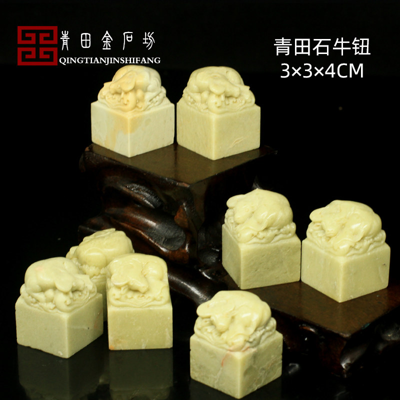 Green Fields Stone Bull Button Engraving Buttons 3 * 3 * 4CM Seals Imprinted Stone Seal Gold Stone Seal Engraving