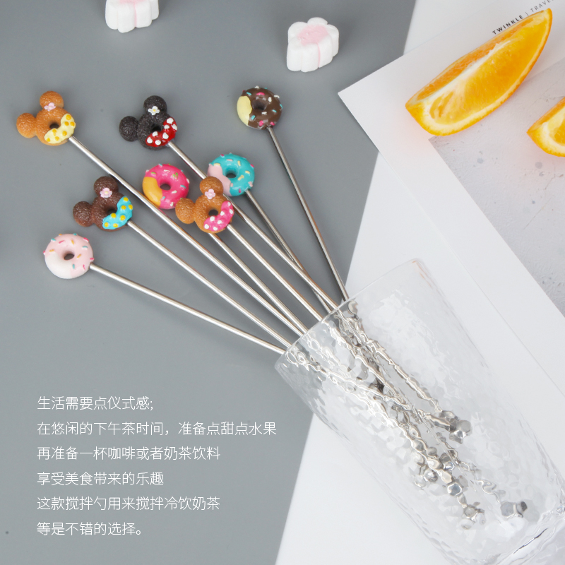 Stainless steel 304 mixing stick Creative cartoon cute donut coffee long handle mixing stick Juice bartending stick