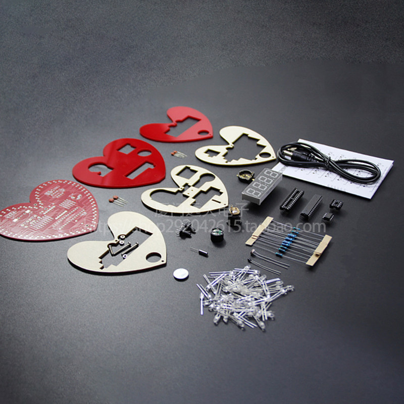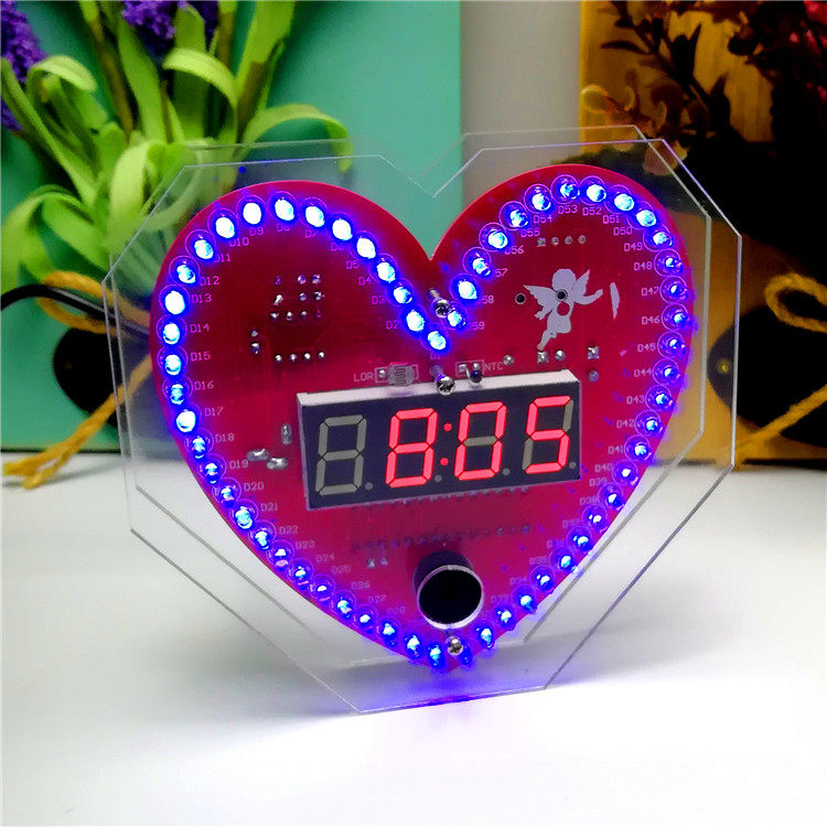 Heart - shaped music stream lamp clock production suite 51 microchip DIY electronic production welding practical training production