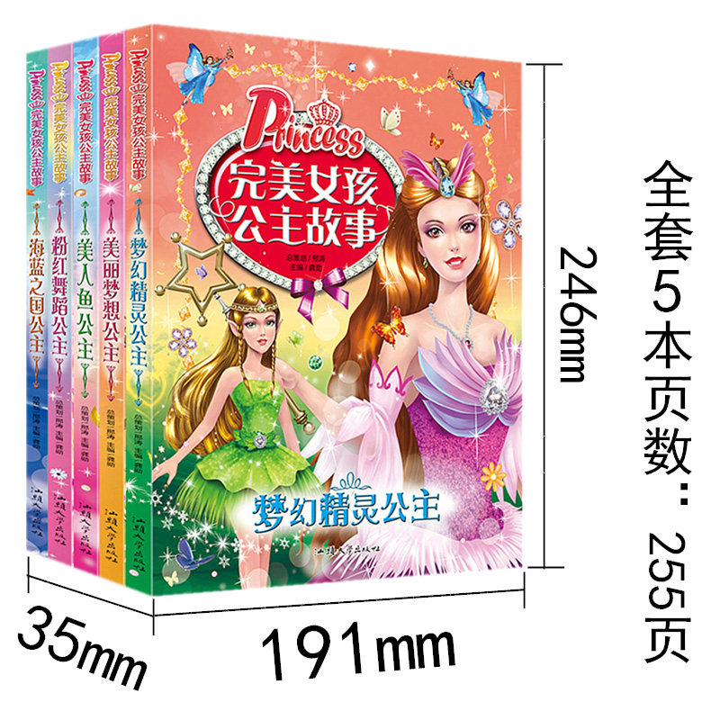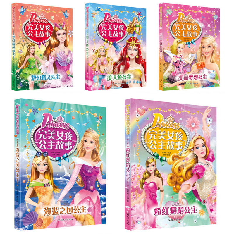 Perfect Girl Princess Storybook Complete With 5 Volumes Dream Genie Mermaid Beauty Dream Sea Blue Capital Pink Dance Princess Colorful patterns Note edition children plotbook 6-12-year-old girl love to see