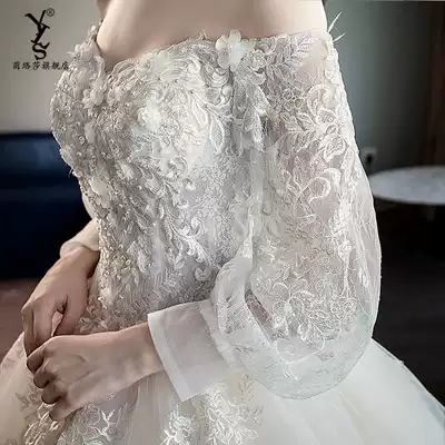 Wedding dress 2021 new temperament one-shoulder high waist forest bride long-sleeved tail super fairy dream pregnant women cover pregnant belly