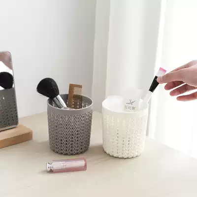 Simple small fresh desktop decoration pen holder round hollow girl storage tube beauty brush makeup brush eyebrow pencil storage box