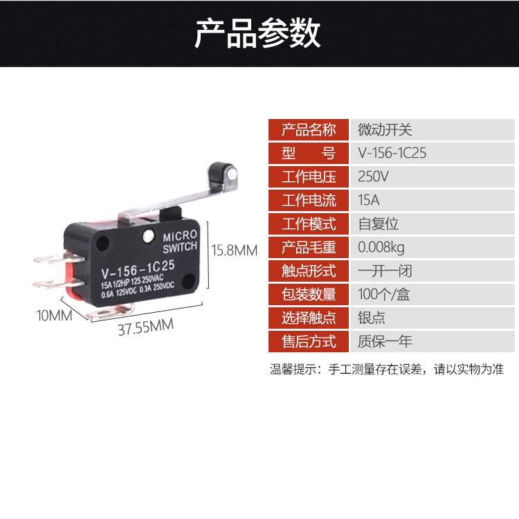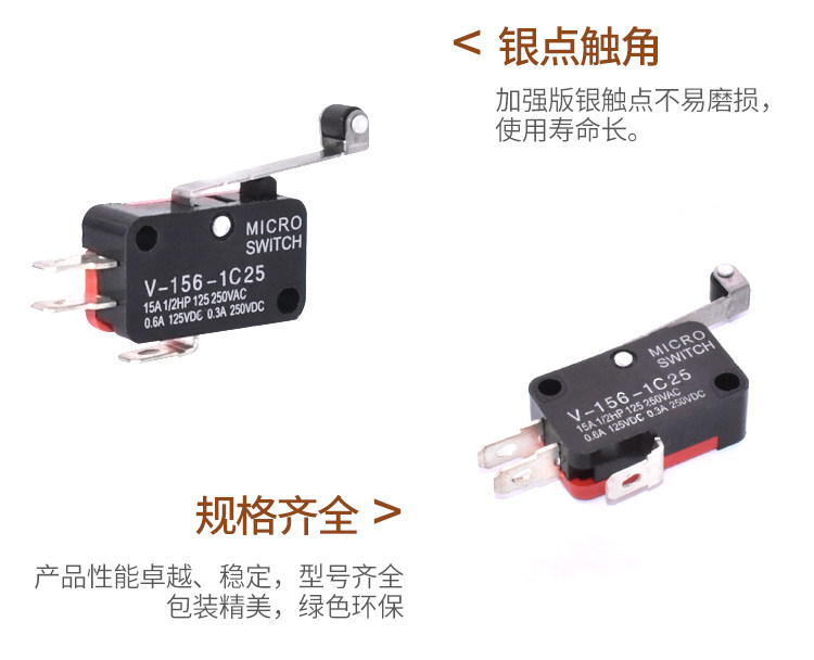 Microswitch V-156-1C25 stroke limit switch silver contact with roller lever self-reset 16A-Taobao