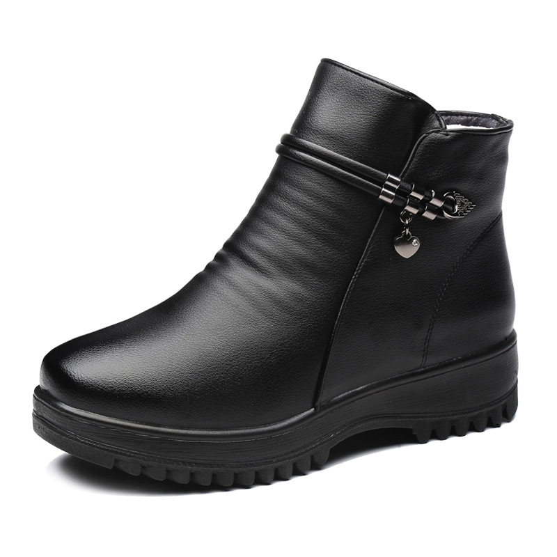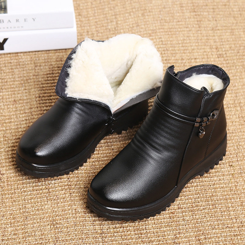 Winter Moms Seniors Cotton Shoes Warm Genuine Leather Gush Leather Shoes Wool Short Boots Woman Middle Aged Big Code Flat Bottom Non-slip-Taobao