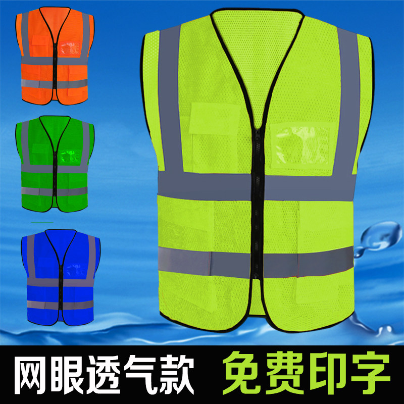 Reflective vest vest safety clothing fluorescent yellow mesh breathable sanitation construction site safety protective clothing custom printing