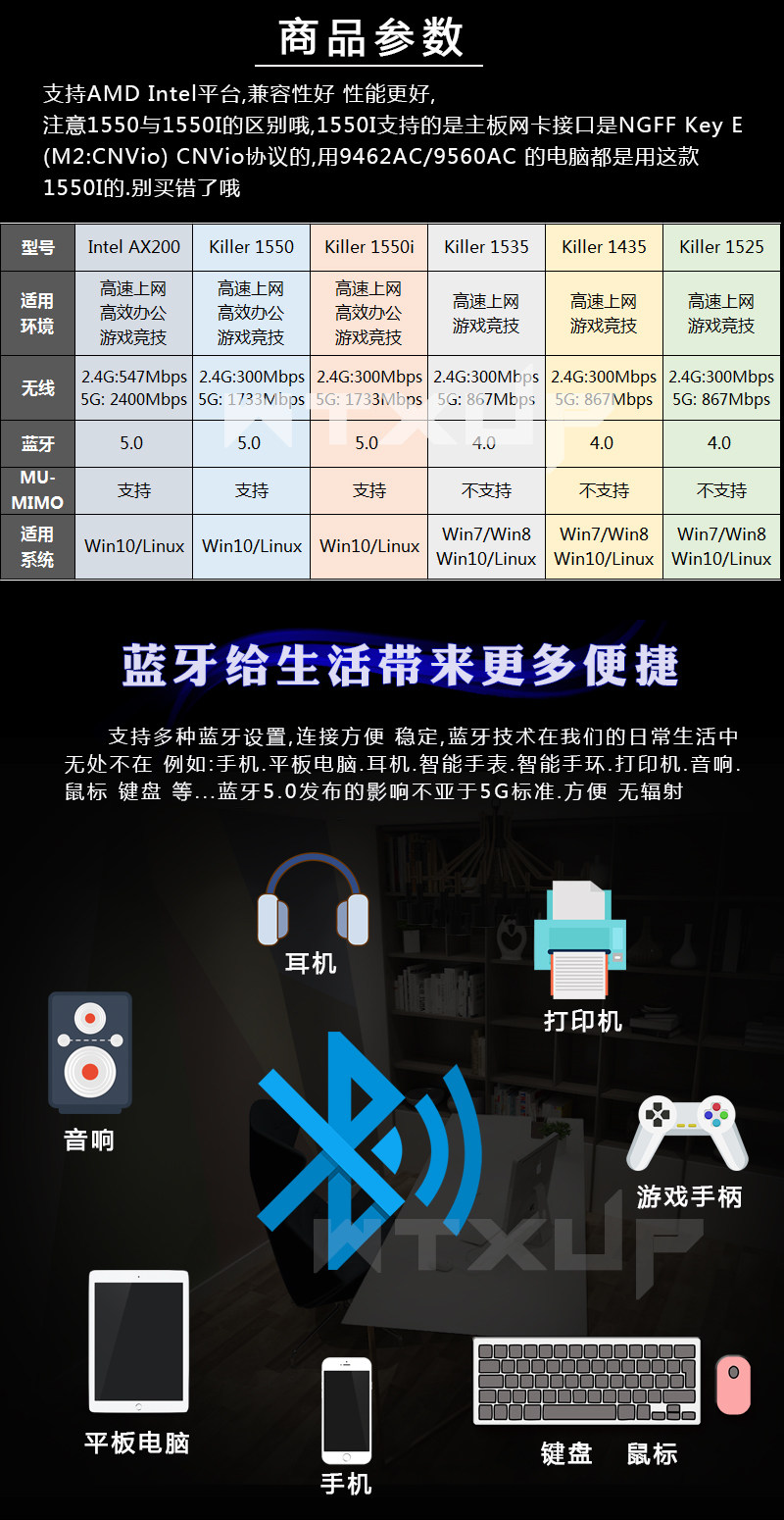 Killer 1675X 1650X 1550AC 1550AC frequency one thousand trillion built-in wireless network card 5 1 Bluetooth AX200