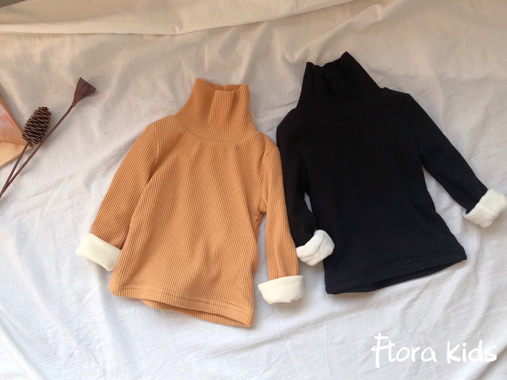 Flora kids winter children's boys and girls plus velvet thickened pit strip bottoming shirt warm top bottoming inner wear
