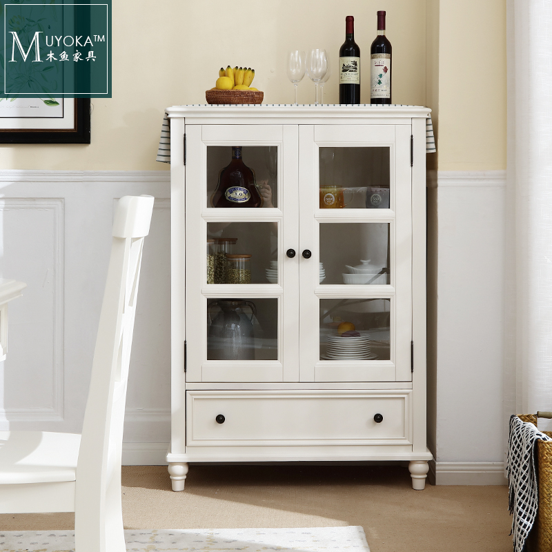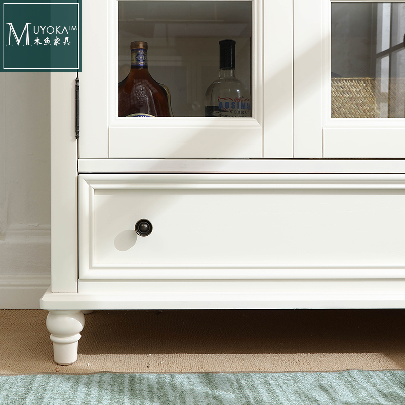 American Countryside Peach Blossom Heart Wood White Living Room TV Side Cabinet Dining Side Cabinet Wine Cabinet-Taobao