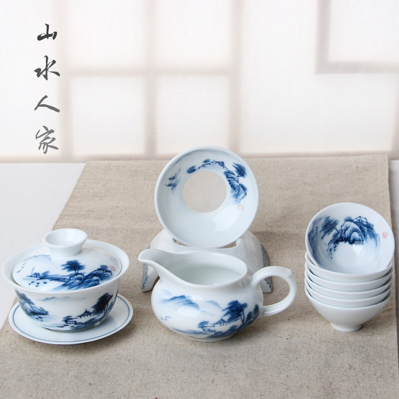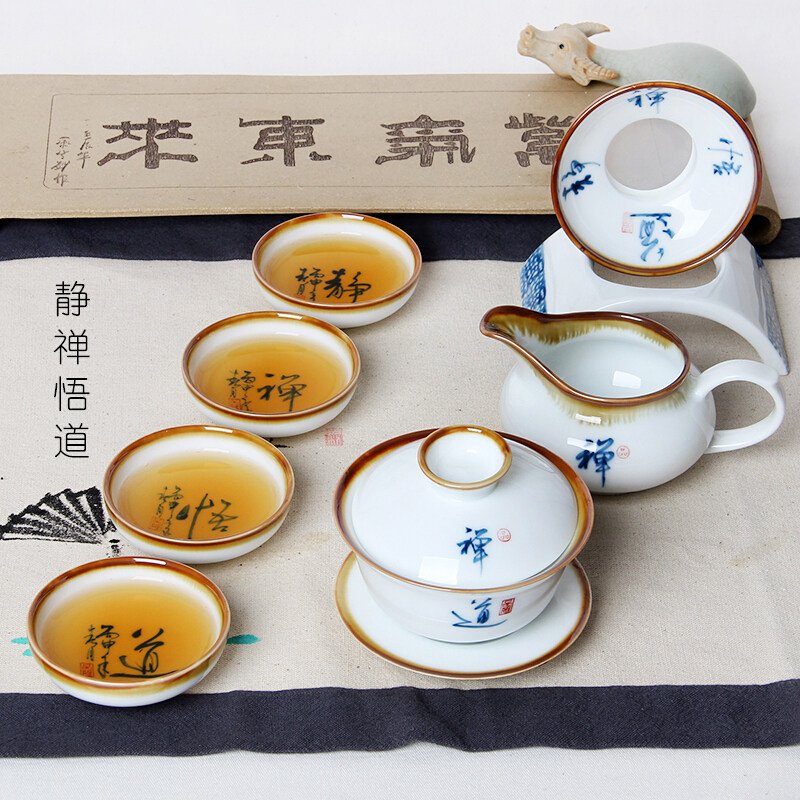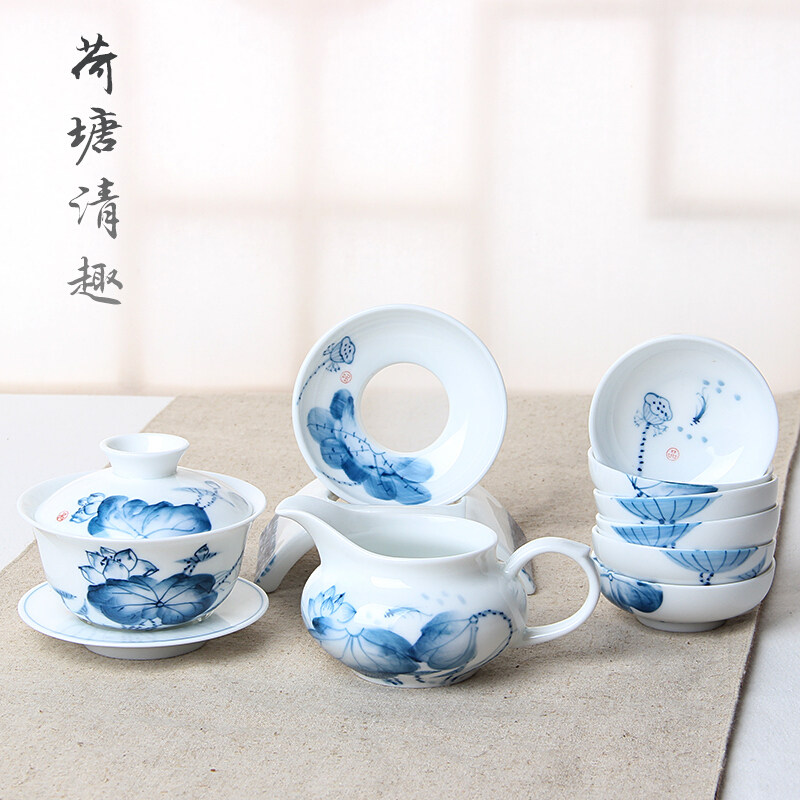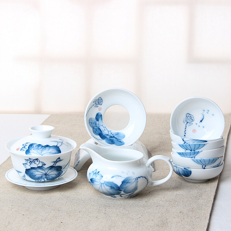 Jingdezhen Handmade Gongfu Tea furniture set of ceramic cover Ceramic Cover Bowl Bucket Hat Cup Brief White Porcelain Tea Maker Whole Set