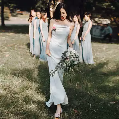 Light wedding dress 2021 New satin simple moron satin suspender backless bridesmaid dress bridesmaid dress tour Daily