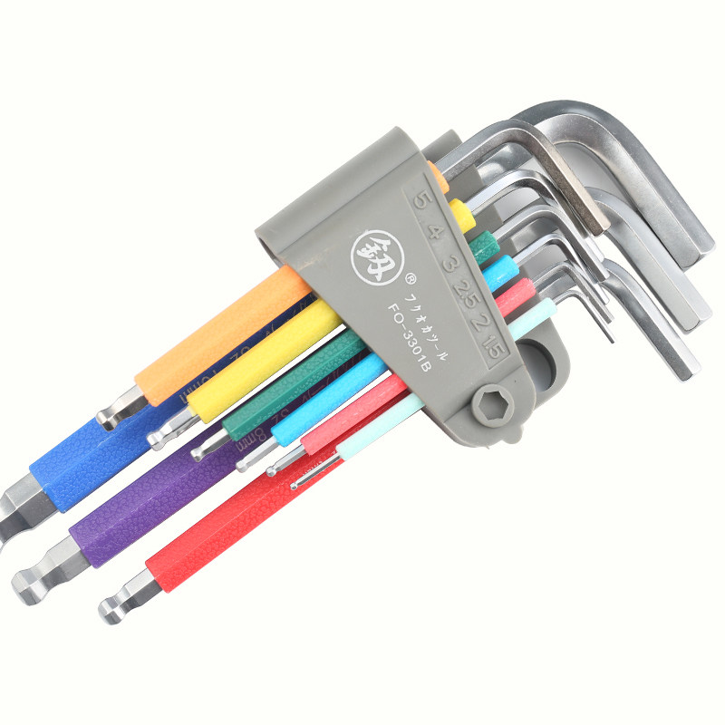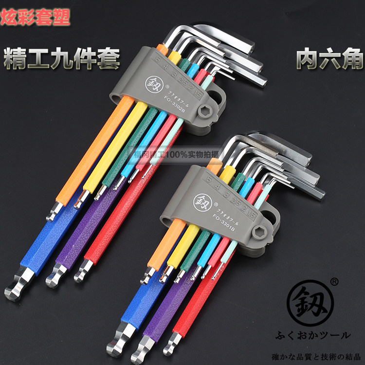 Japan imports Fukuoka inner hexagon wrench suit with high hardness combination lengthened L-shaped industrial grade 9 pieces of tool