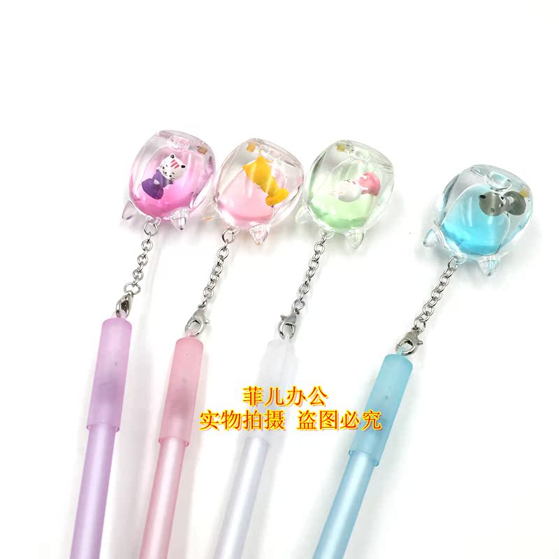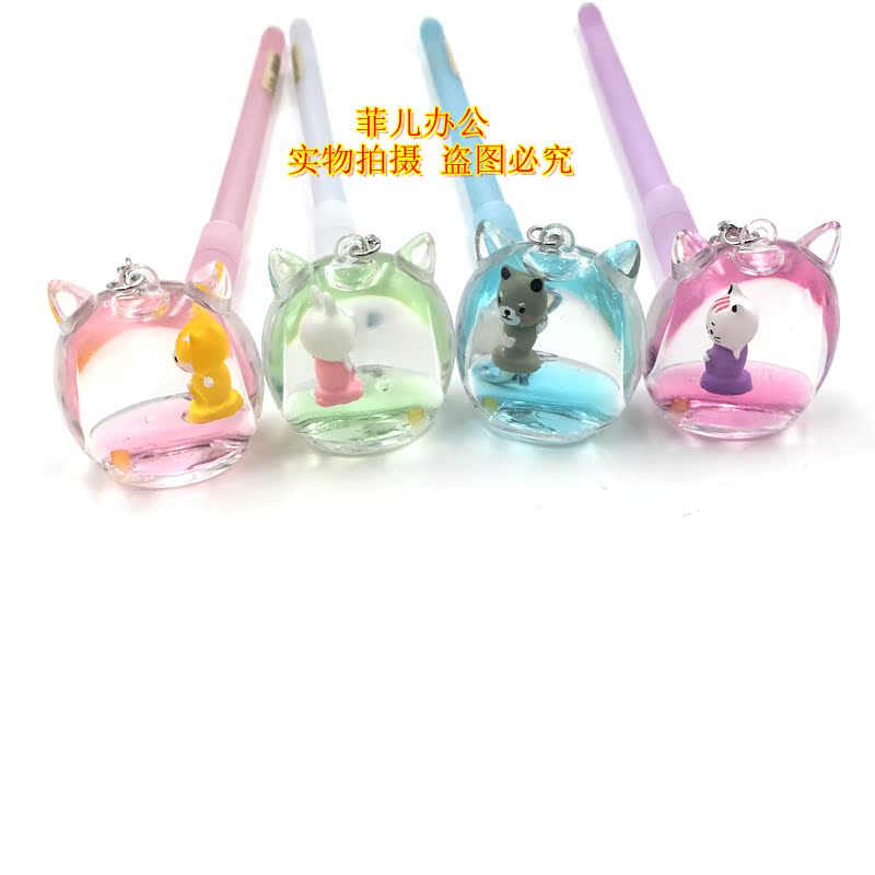 Korean Creative Autumn Kids Swim Surfing Unisex Pen Cute Kitten Crystal Water Oil Ornament Black Water Pen