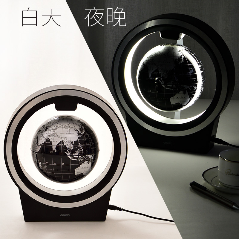 Deli Globe Suspension Globe Ornament Office Home Furnishing Creative LED Light Glow Bright Globe Globe 360° Electric Rotation HD Globe Gift Gift