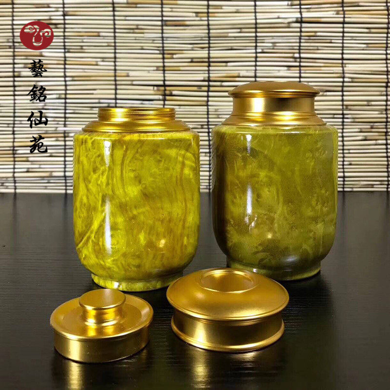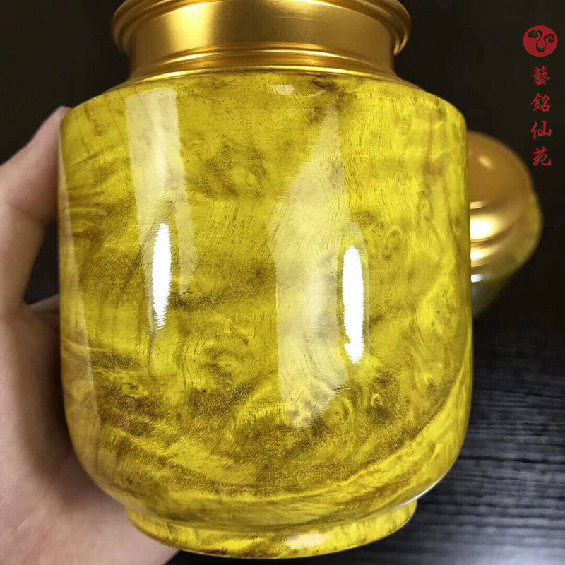 Mahogany gold camphor wood solid wood tea can sealed moisture-proof trumpet wake up tea can Creative tea set Tea boxed tea can