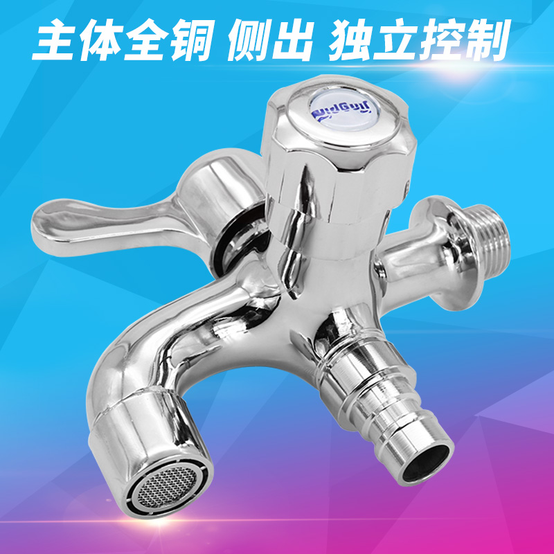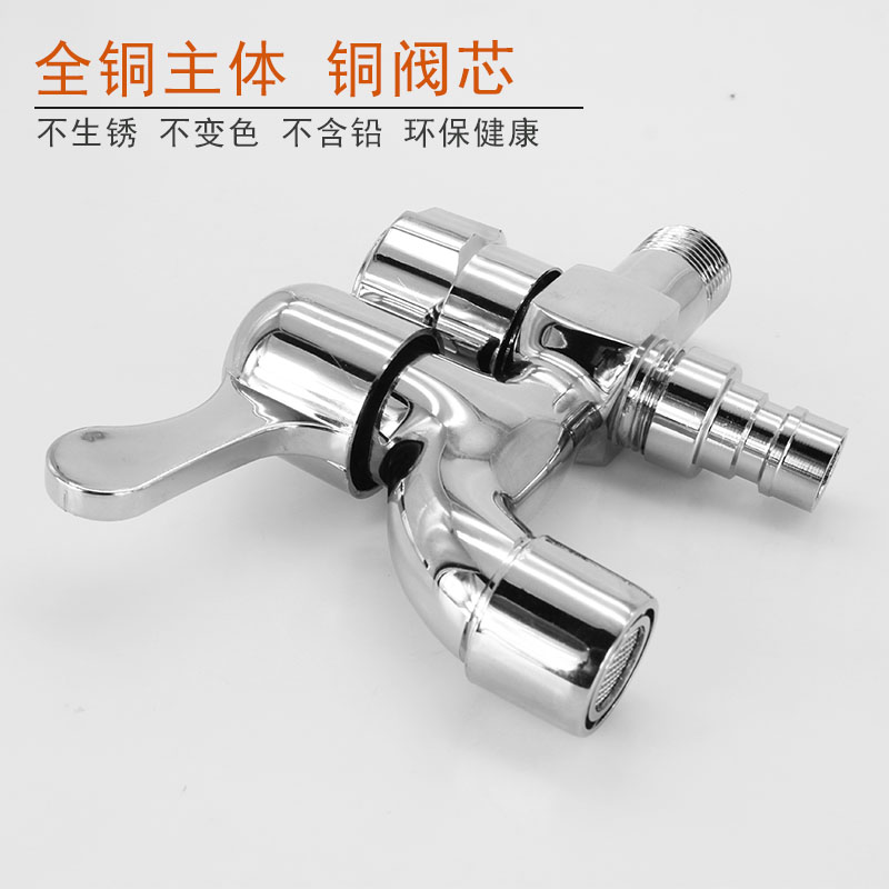 All copper washing machine tap double-use multi-function household double head into two out mop pool quick single-cold faucet