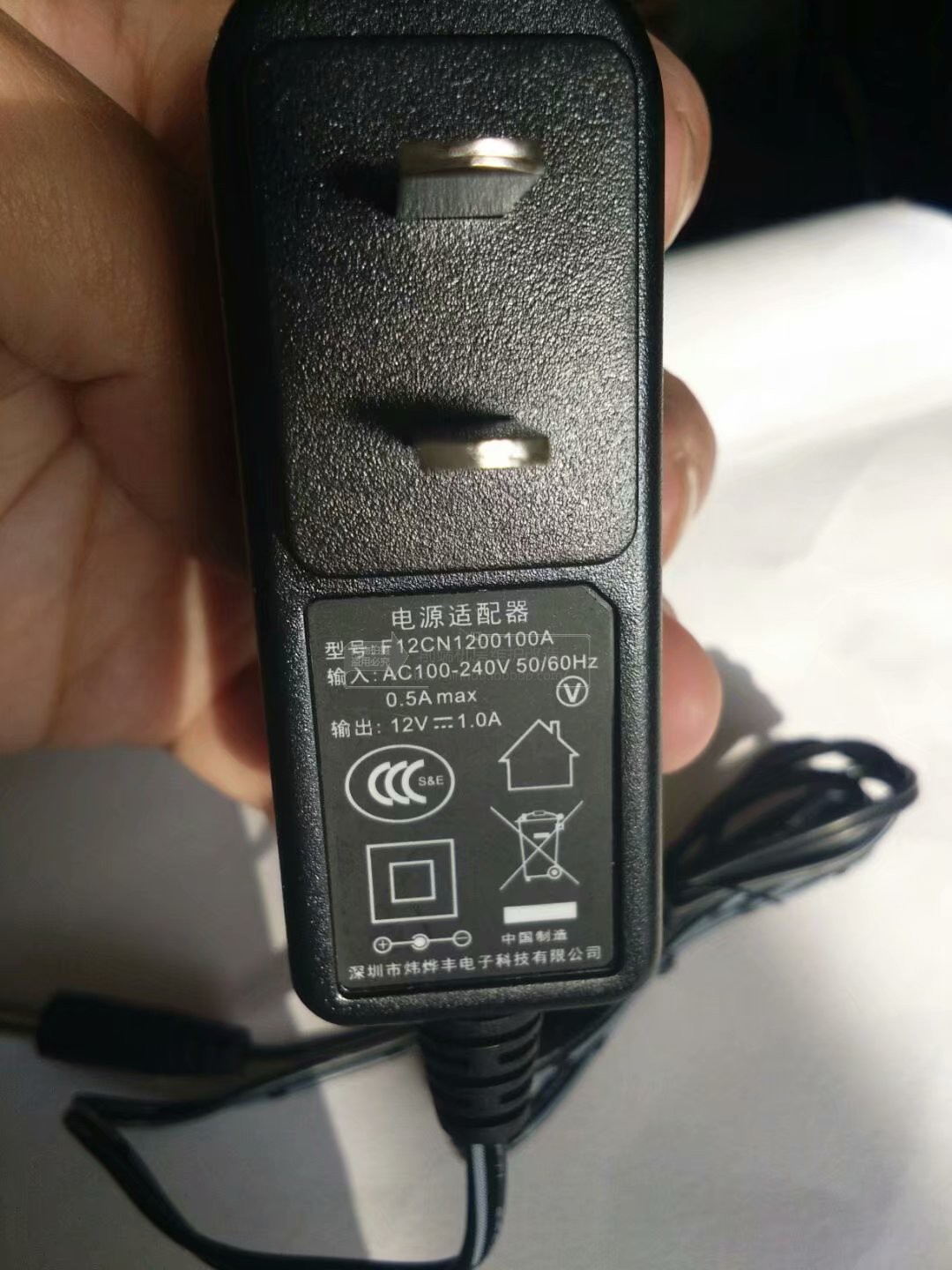 f12cn1200100a power adapter input ac100-240v50 60hz0 5a max 12v-1a