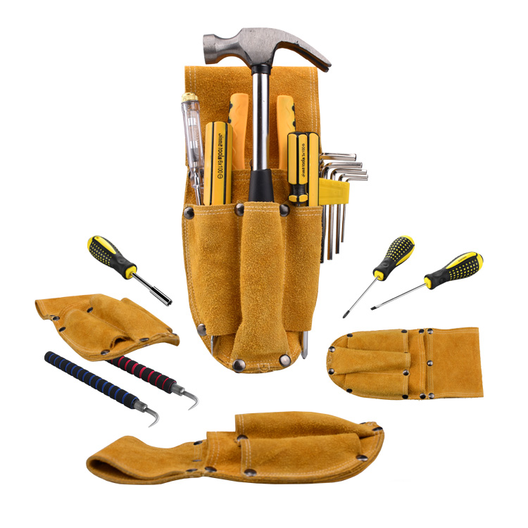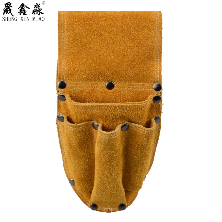 Leather electrician bag thickened wear-resistant tool bag high-altitude work small portable waist bag multi-function repair tool bag