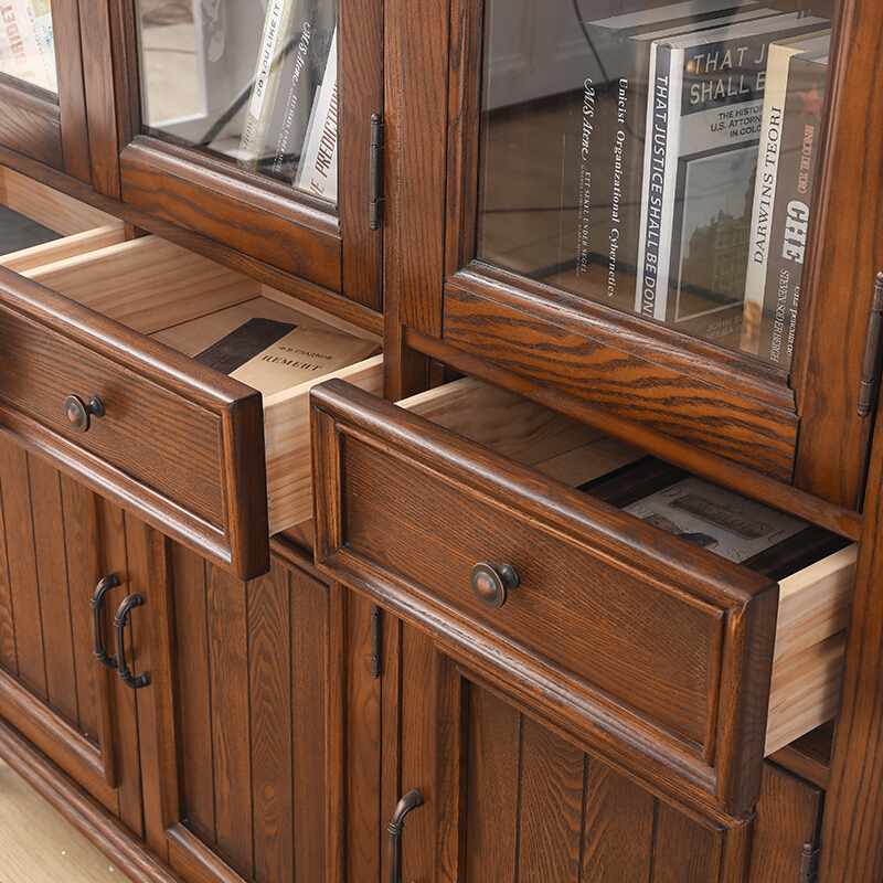 Pure solid wood bookcase bookshelf American country custom bookcase two-door bookshelf cabinet three-door bookcase four-door solid wood combination