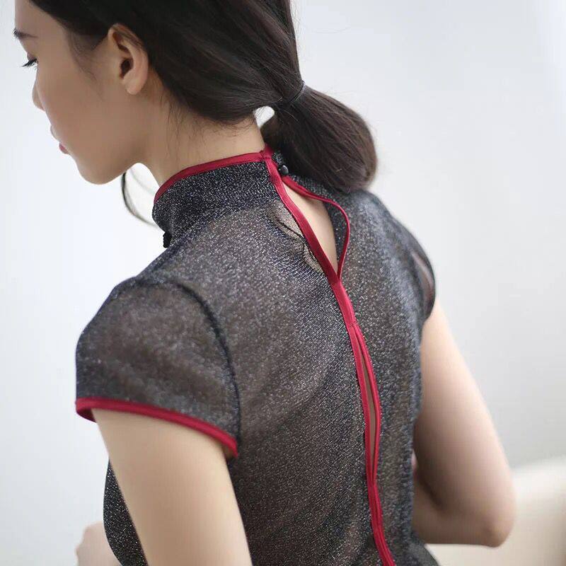 Sexy new pajama dress plus fat plus size fat split Chinese style cheongsam bag hip perspective uniform underwear set