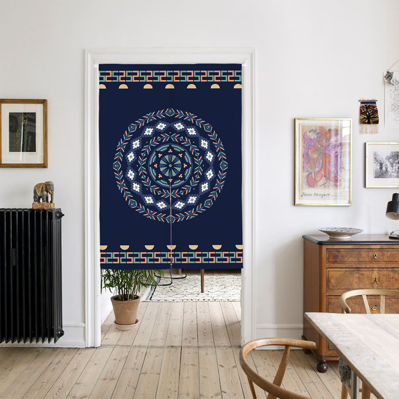 Chinese style ethnic wind cloth art door shade half shade bedroom kitchen partition curtain does not perforate cloth curtain adornment hangs a shade to prevent lampblack