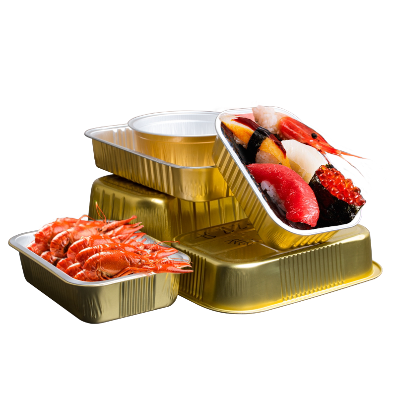 Sealed gold tinfoil box Disposable takeaway packaging commercial rectangular barbecue lobster aluminum foil lunch box sealing machine