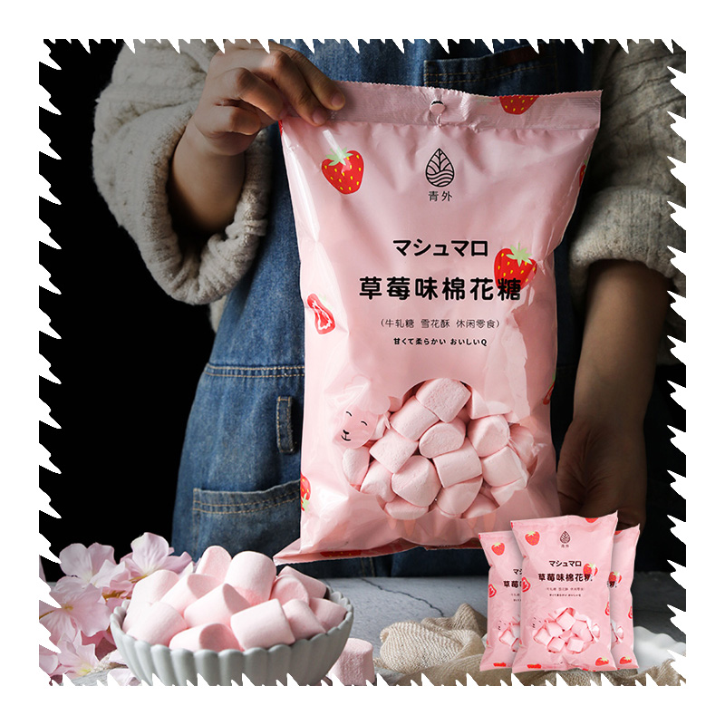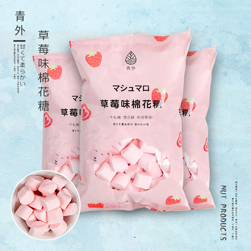 Qingwai strawberry marshmallow 1 8kg large package for snowflake crisp nougat special baking raw materials can be baked