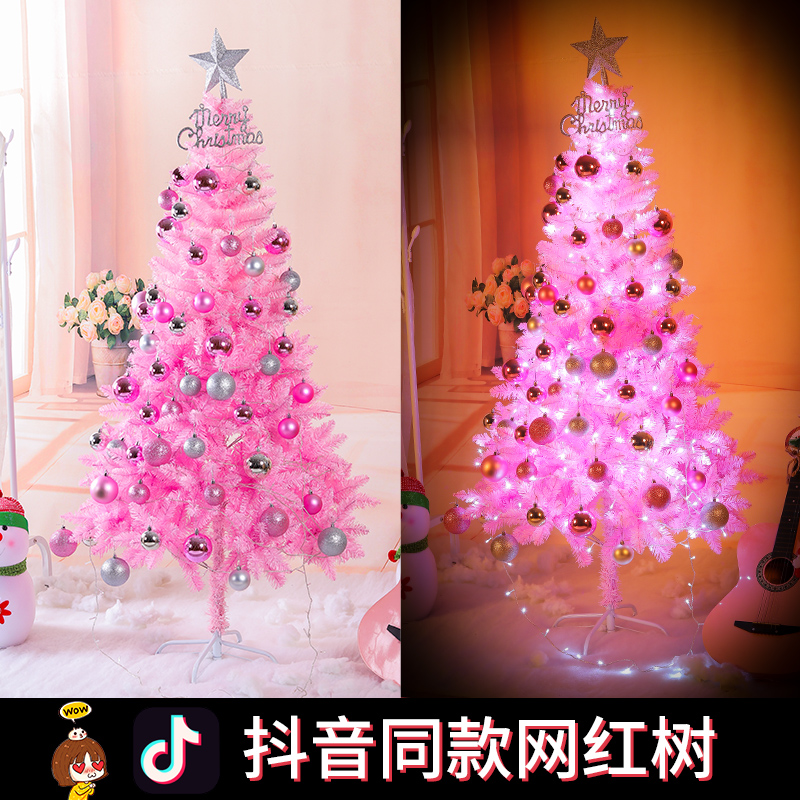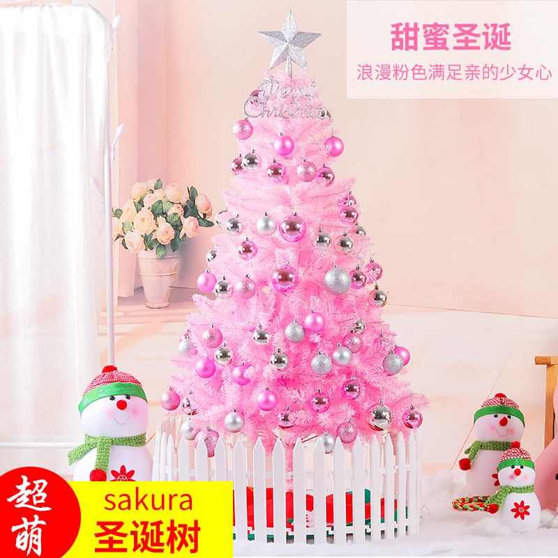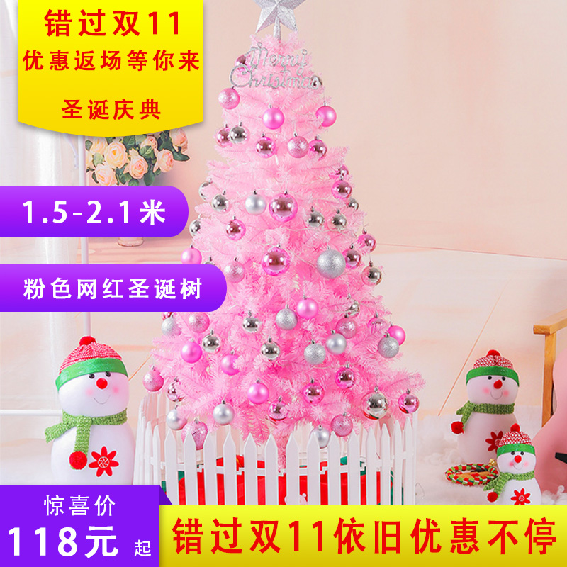 Pink Christmas tree 1 5m package set 1 8 2 1m household Festival decorations Cherry Blossom net Red shake sound ins