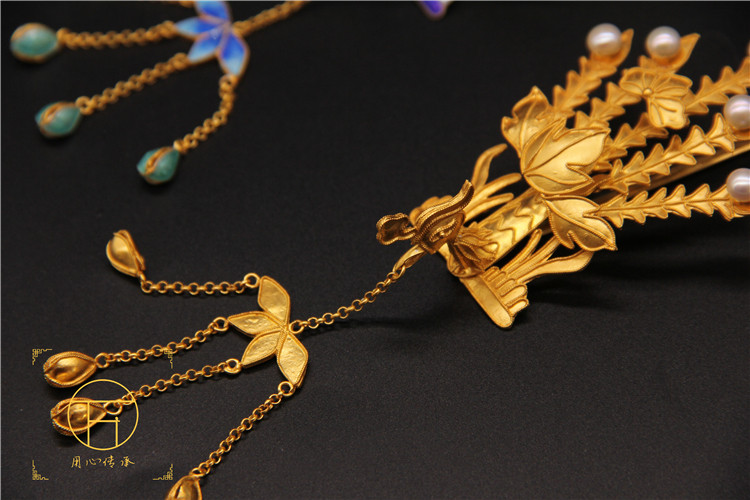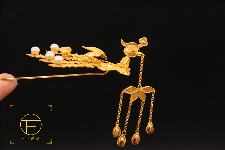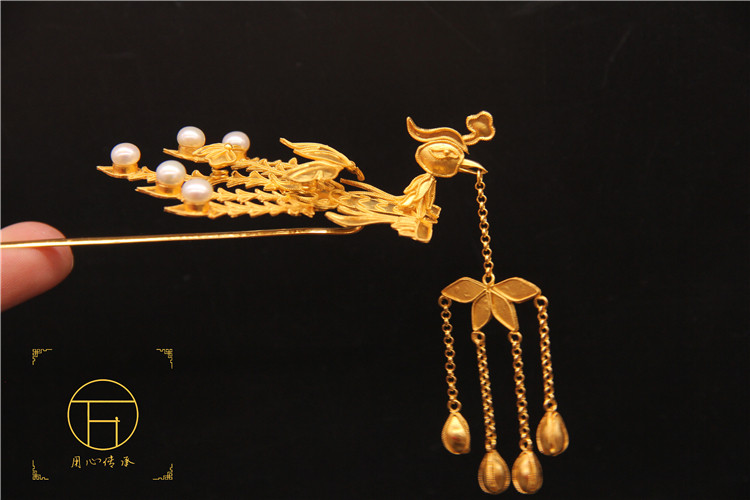 Sterling silver handmade filigree inlaid sterling silver plated Ming and Qing ancient gold and silver jewelry head and face hairpin phoenix hairpin gold and silverware