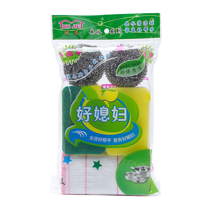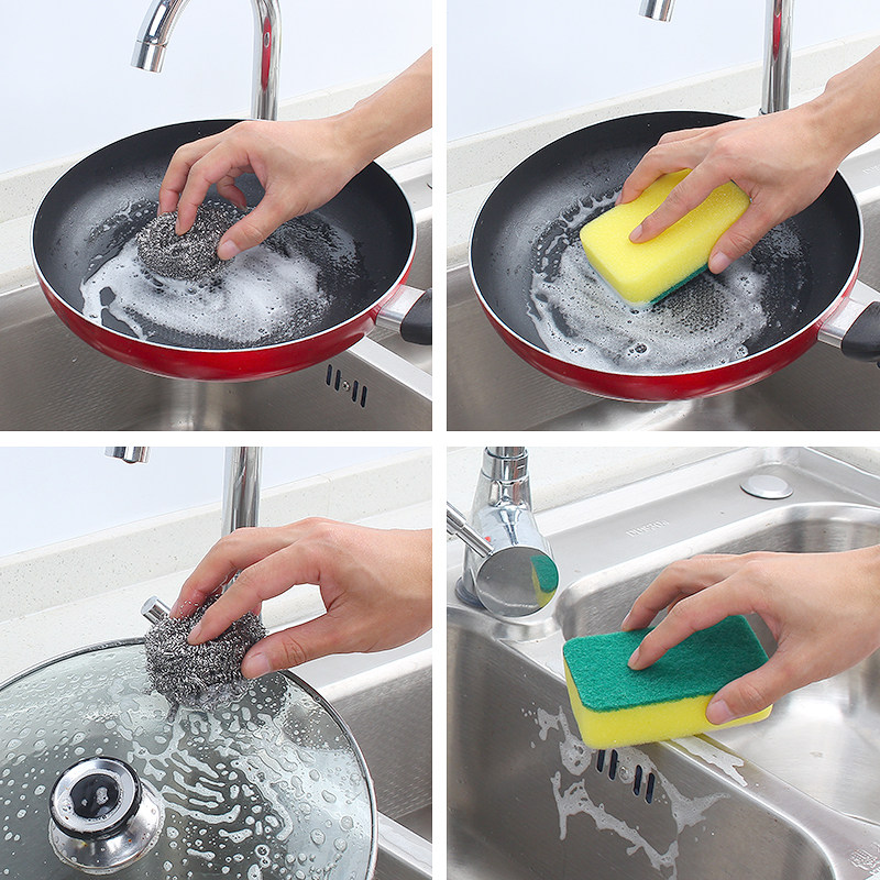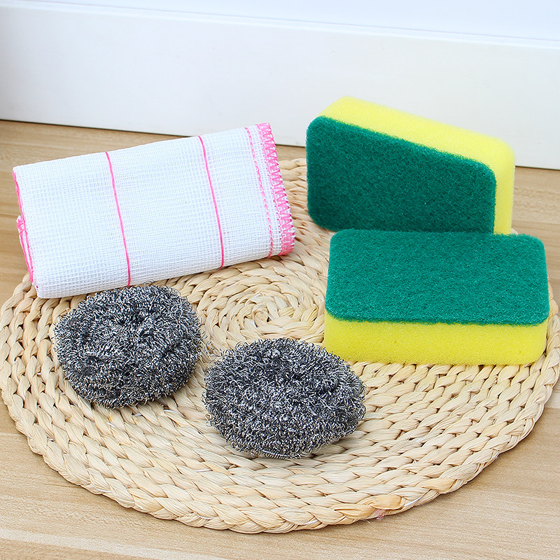 Kitchen scouring pad decontamination sponge wiping magic wiping dish steel wire ball dishwashing rag washing pot cleaning five-piece set