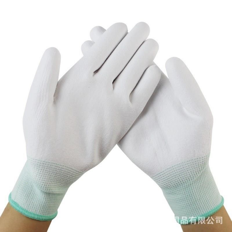 Nylon pu coated finger coated palm gloves antistatic labor wear resistant work industry non-slip old guard gluing dust-free and thin ladies