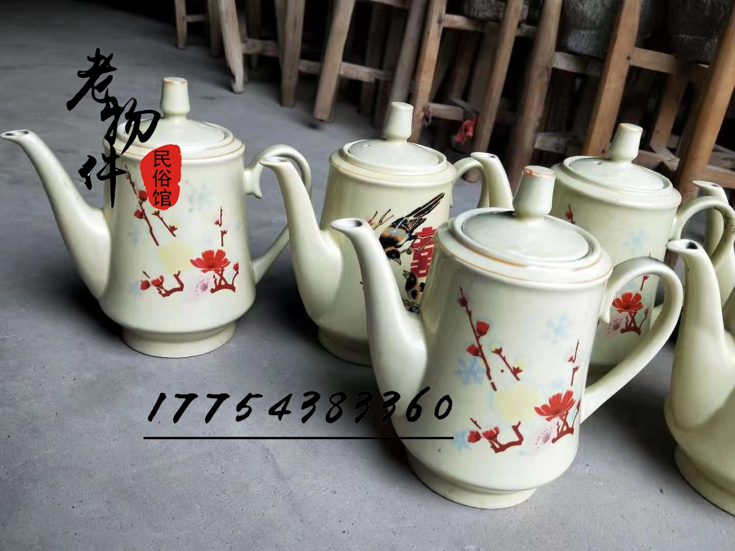 Folklore old objects, old teapots, old kettles, old porcelain pots, nostalgic 70s film and television props, nostalgic antique collections