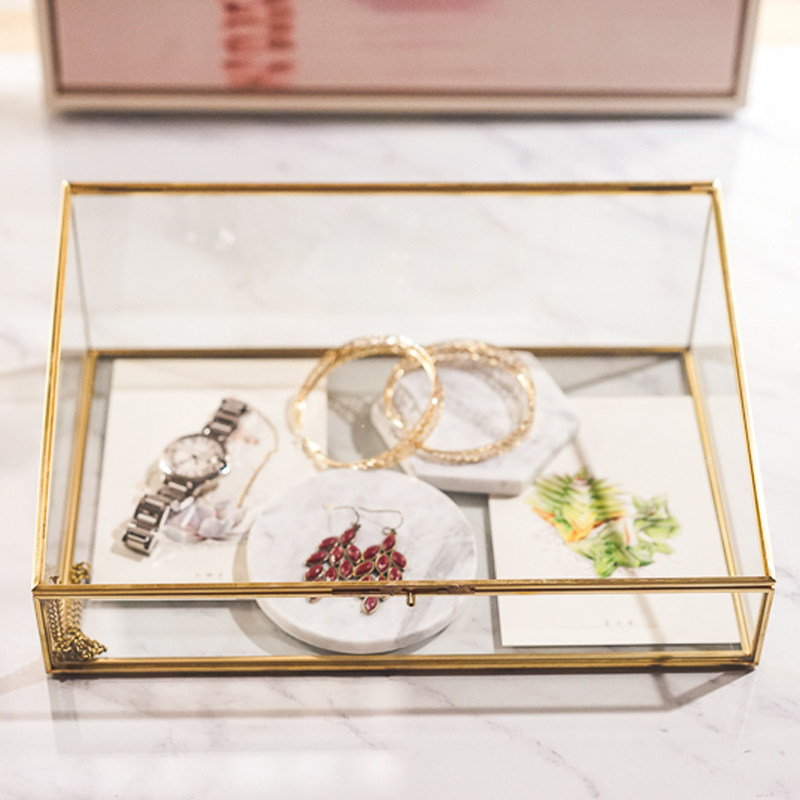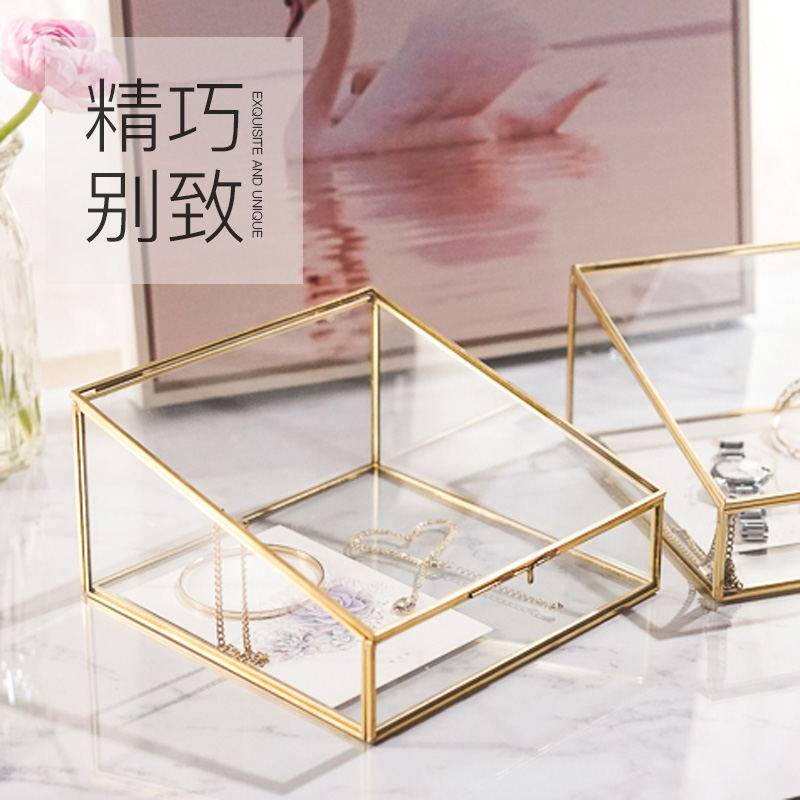 Trapezoidal polygonal retro copper-edged glass jewelry box decoration princess jewelry storage box display box decoration