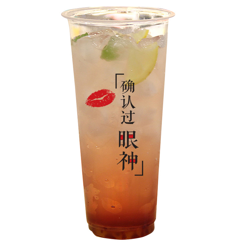 Confirmed eyes 90 caliber disposable milk tea cup with lid juice drink transparent plastic cup injection cup customization