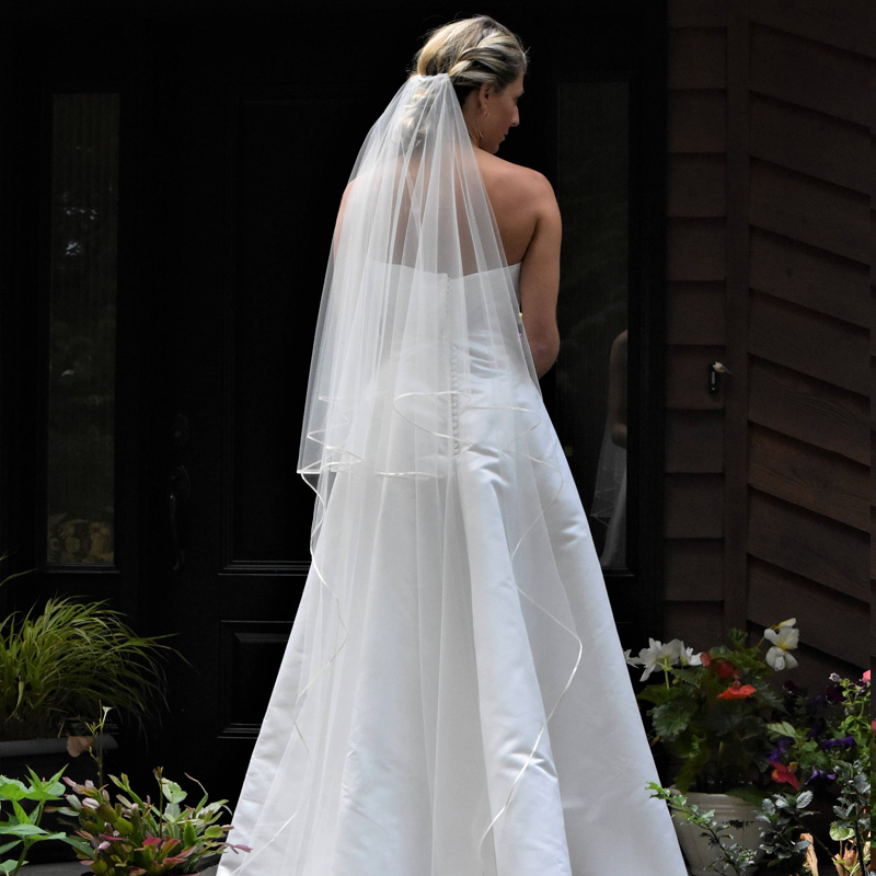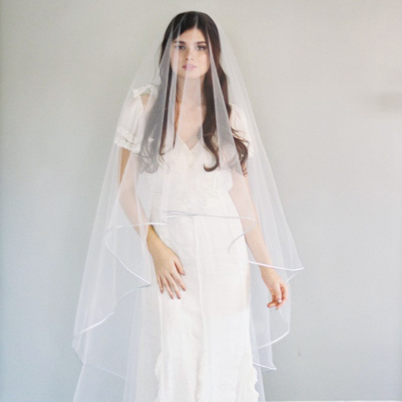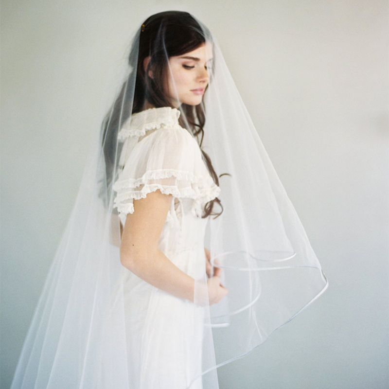 New bridal veil female satin bread edge long tail Sen department simple wedding Korean super Fairy wedding veil headdress