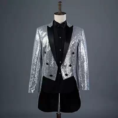 Men's sequined tuxedo stage gown magician jacket nightclub bar host court suit men's suit