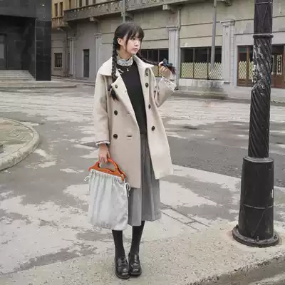 Chuan Dai: Original architecture design rice gray double-breasted retro loose woolen coat coat