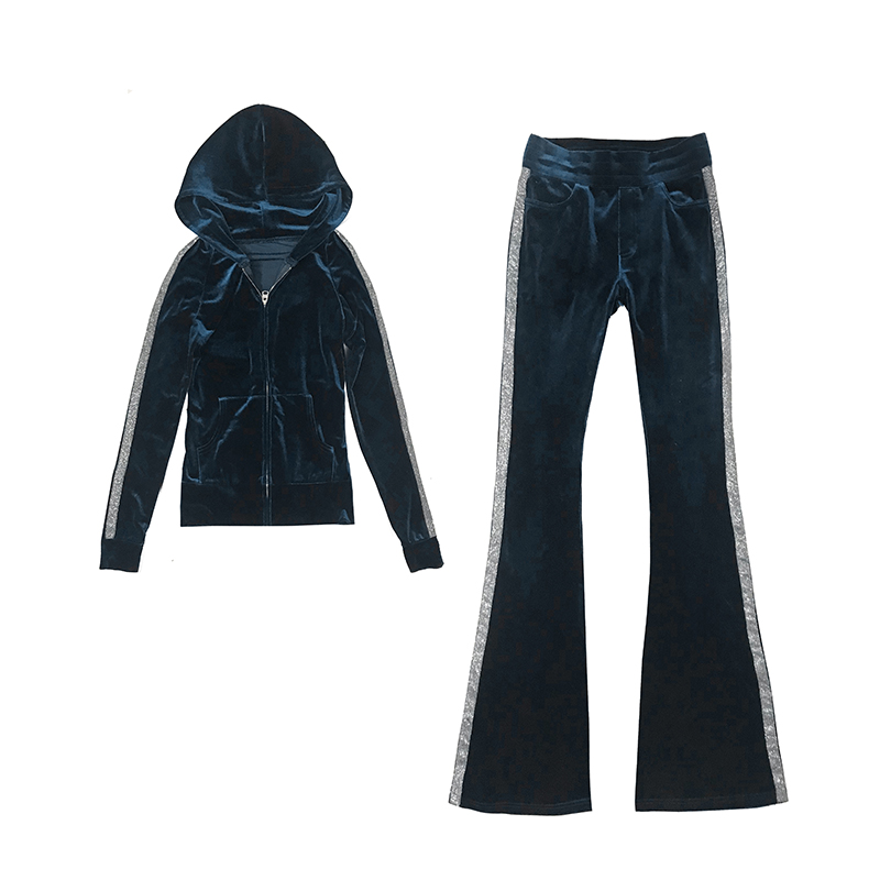 Gold velvet sports suit women's spring and autumn 2021 new trendy fashion Western style slim slim casual two-piece suit