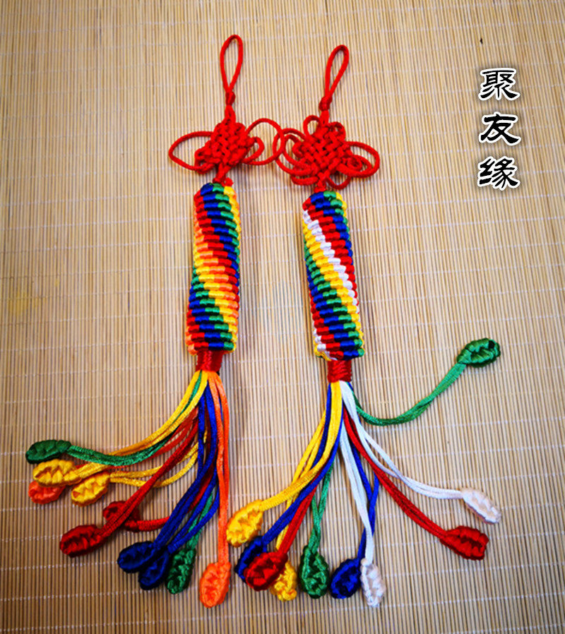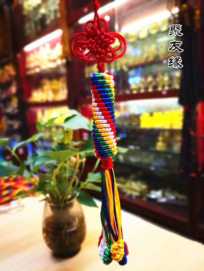 Tibetan pure hand-woven multicolored prayer wheel Vajra knot car hanging bag hanging ornament medium